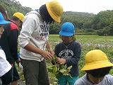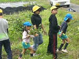 普賢寺幼稚園の園児と一緒に収穫しました。