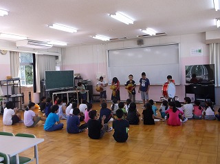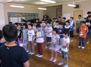 9月25日(月)運動会に向け、応援練習を行いました。子どもたちは、異年齢集団のあおぞらグループの赤白2つのグループに分かれ、応援団長の指示に従って掛け声や手拍子の仕方を練習しました。子どもたちは応援団が考えた言葉に合わせて、声をそろえて大きな声で応援練習を行いました。運動会当日も大きな声で応援よろしくお願いします。