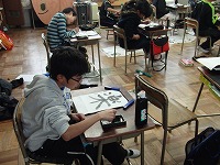卒業する6年生にとっては、この日が辻尾先生に教えていただく最後の日となりました。そこで今日の授業は「卒業の想いを表すこの一文字」と題して、一人一人が心を込めて真剣に「一文字」に挑戦しました。