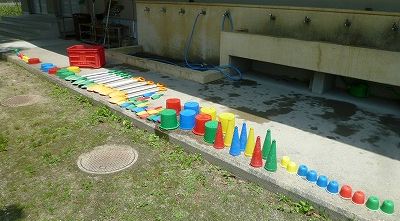 最後は、活動に使ったスコップやカップもていねいに洗って片付けました。よくできました。