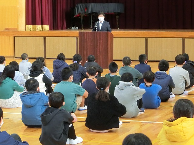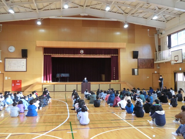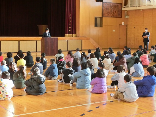 1月10日(火)3学期始業式を行いました。子どもたちが登校してくることで、冬休み中は静かだった校舎に、活気が戻りました。校長先生からは、令和5年の普賢寺小学校に関わる数字のクイズとお話がありました。