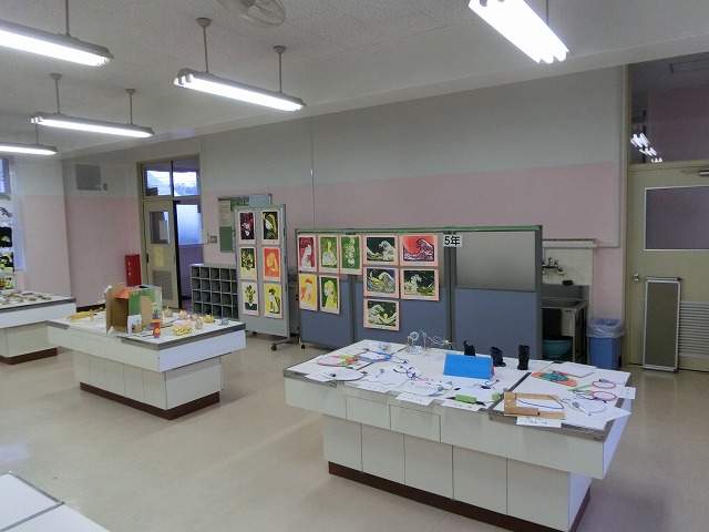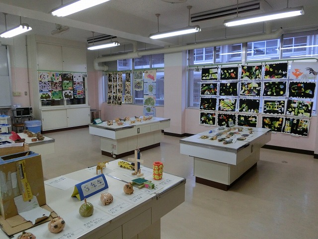 1月14日(火)~17日(金)の期間、本校家庭科室で図工展を行っています。今年度それぞれの子どもたちが取り組んだ力作たちが展示されています。
