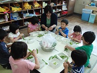 1年生がそら豆のさやむき体験をしました!