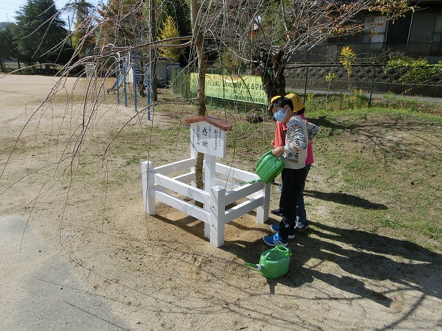 11月1日(水)先日の創立150周年記念事業で植樹したしだれ桜は、植え替えたばかりなので毎日の水やりが欠かせません。毎日おおぞら学級の子どもたちが、交代で水やりと愛情を注いでくれています、すくすく大きく育ちますように。