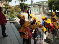 4月11日(金)、1年生の下校の様子です。(※いつも玄関前に地域ごとに並びます。)