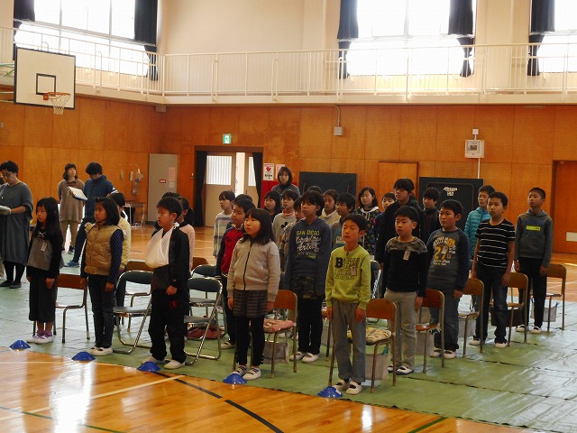 3月13日(火)卒業式に向けた在校生練習を行いました。この日は、1年生から5年生までの在校生が体育館に集まり、卒業式で発表する歌や呼びかけ、起立のタイミングなどの練習を行いました。特に呼びかけは、本校の少ない児童数を活かして、全員発表するのが特徴で、子どもたちは卒業生に感謝の気持ちを伝えようと一生懸命練習に励みました。卒業式は来週3月20日(火)に行います。