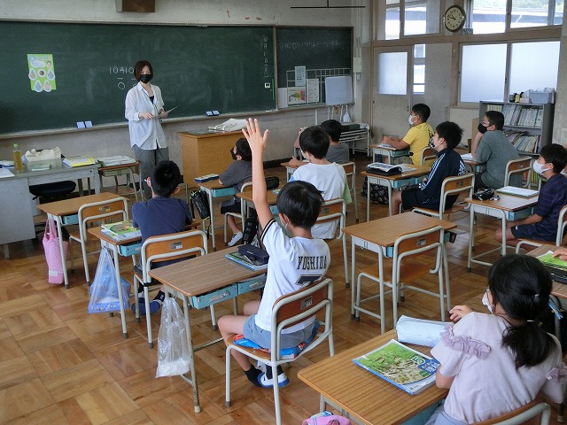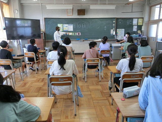 10月3日(月)4日(火)体重測定にあわせて保健指導を行いました。今回のテーマは10月10日の「目の愛護デー」にちなんで「目」です。「ドライアイ」についてや、目を大切にするために気をつけることの話を聞きました。ご家庭でも話題にあげてみてください。