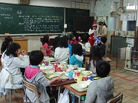 12月13日(金)、全校児童にクリスマスカードを渡すため、児童会運営委員の6人がサンタとトナカイに扮して各教室を回りました。名付けて「クリスマス・サプライズ!」 給食時間中に突然現れたサンタとトナカイにみんなはびっくり!・・・ではなくて大喜び!・・・うれしい!