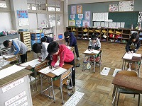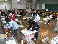 3~6年生の作品の名前は、毎年担任が書くことになっています。担任にとっては、冷や汗のでる時間です。それでは、奮闘振りをご覧ください。