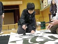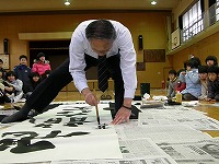 始まりの式です。 書道家 辻尾先生が今年のことばを書かれます。