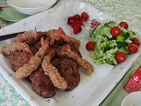 いつもの給食とは違い、おかずが大皿に盛り付けられています。