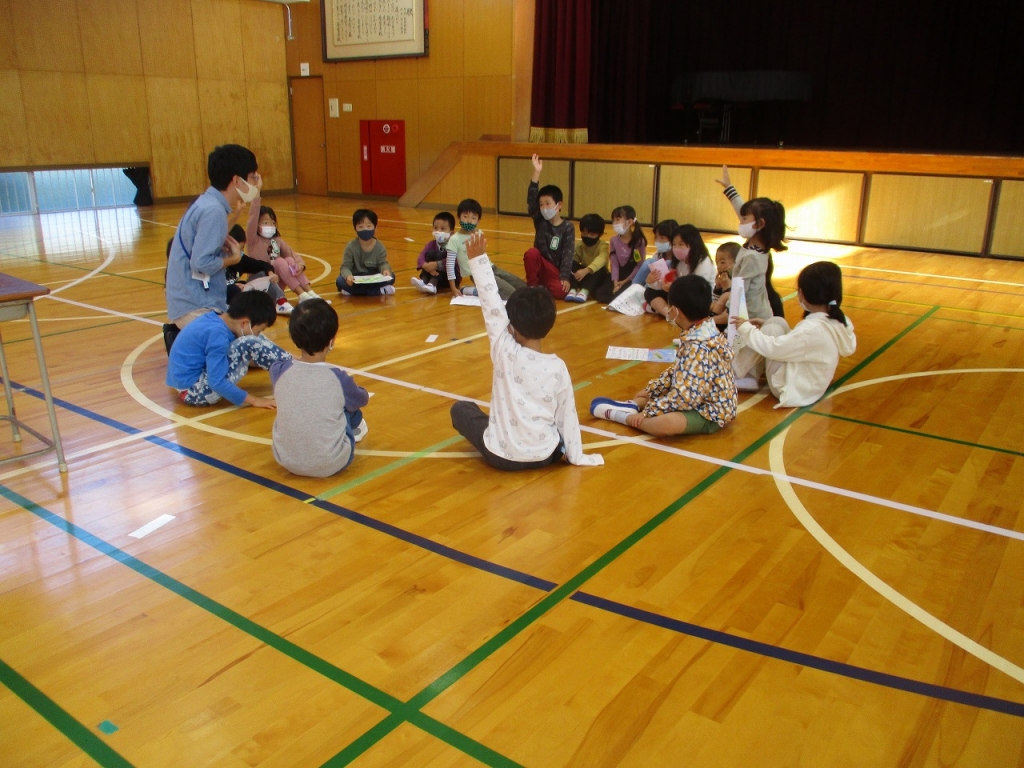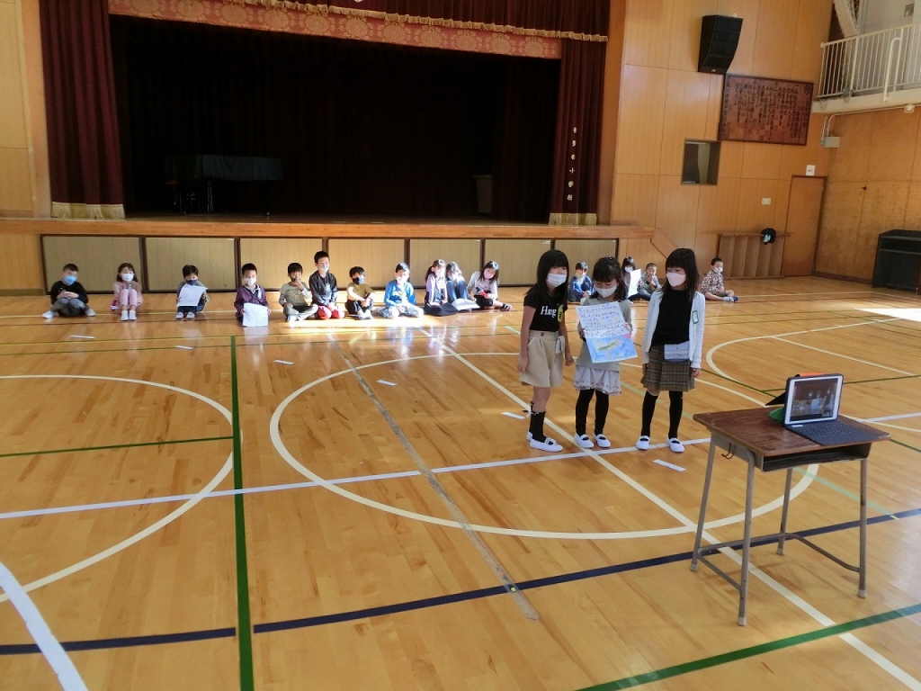 発表した後、担任の先生と振り返りも行いました。次は参観日の『くじらぐも』音読劇も頑張ってね。