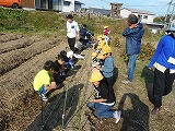 11月7日(水)畑の先生 田宮先生に来ていただき、2年生、3年生が玉ねぎの植え付けを行いました。