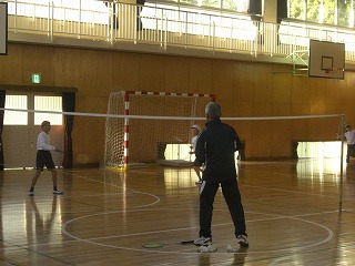 バドミントンクラブではボランティアの先生が投げるシャトルを打ち返す練習を行いました。