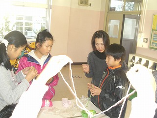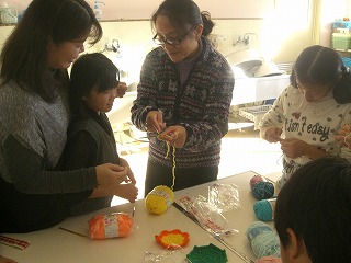 3人のボランティアの先生がかぎ編みの仕方を1から丁寧に教えてくださり、子どもたちはかなり苦戦しながらも何とか編み方を覚えました。来週も来ていただき、完成を目指します。