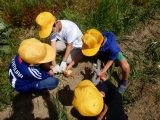 3年生と4年生とが一緒にタマネギを収穫しました。