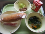 コッペバン、くじらの竜田揚げ、野菜スープ、添えキャベツ