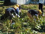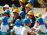 葉を枝からとるこつを教えていただきましたが、なかなかうまくいきません。葉っぱだけをもぎりとった枝も多くありましたが、園児に豆の取り方を教え、立派なお姉ちゃん、お兄ちゃんぶりを発揮していました。