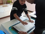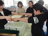 今年も、校区にあり普段から交流をしている「共働スペースふくろう工房」のスタッフ及びメンバーの皆さまの協力を得て、紙漉きを行いました。