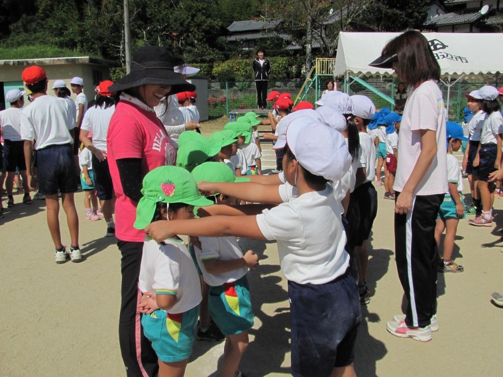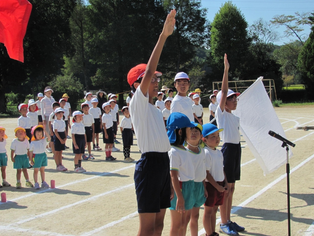 澄み切った青空の下、小学校・幼稚園の運動会合同練習がありました。