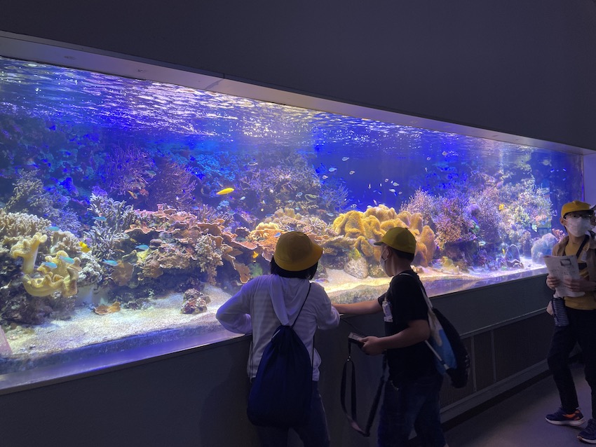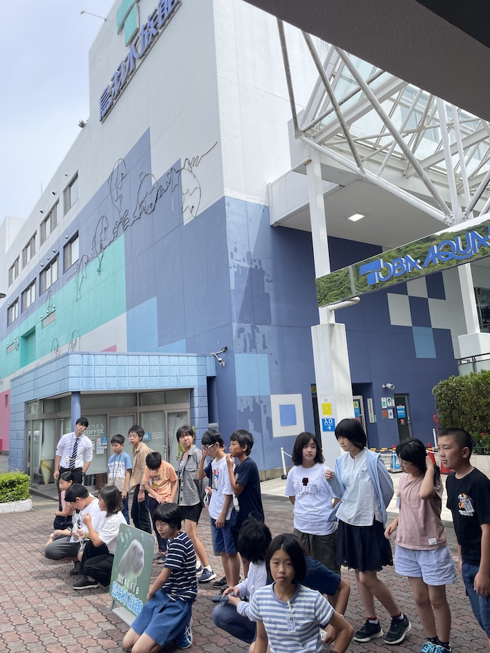 現在鳥羽水族館内で見学しています。早くも昼食を食べている班もあります。