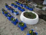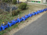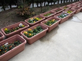 「府内産花きを使った飾花」に応募したところ、プランター5個に植え付けられたビオラが届きました。「花いっぱい運動」で応募したところ当選していただいたビオラやパンジー、キンギョソウにノースポール、緑化協会からいただいたパンジーやビオラ―、チューリップの球根などと併せて、花いっぱいです。子どもたちは、寒い朝も水やりを忘れません。