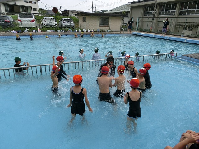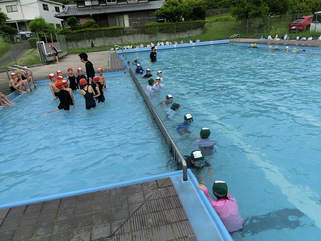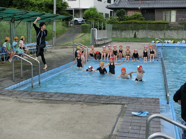 6月27日(火)今日は昨日プールに入っていない学年が、今年度初めてのプールに入りました。冷たい水に「キャーキャー」言いながらも、先生の聞く話は、静かに聞くというけじめをつけながら、楽しく水泳学習をしました。今年も安全で楽しい水泳学習にしましょう。