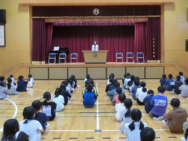 今日は、全校児童体育館に集まって着任式と始業式を行いました。今週月曜日に離任式で5名の先生方とお別れしましたが、今日新らに6名の先生方が普賢寺小学校に来てくださいました。子どもたちはそれぞれ1つずつ大きな学年になりました。新たな気持ちでいろんなことに挑戦していきましょう。