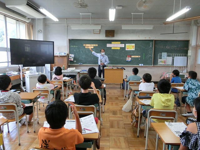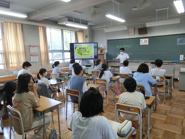 今日の3時間目に、6年生は薬物乱用防止教室、5年生は非行防止教室を行いました。それぞれ警察OBのスクールサポーターに来校いただき、お話をしていただきました。