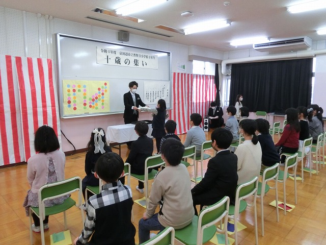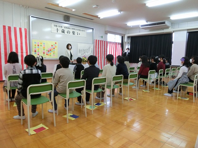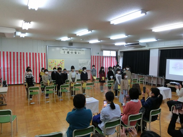 2月16日(木)今日の5・6時間目に、4年生が『10歳の集い』を行いました。今まで自分が頑張ってきたことやこれから頑張りたいことをそれぞれが発表したり、家族への感謝を表現したり、今日に向けて取り組んできた成果を十分に発揮し、笑いあり涙ありの素晴らしい集いになりました。