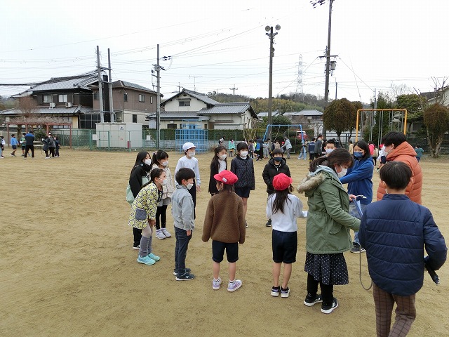 今週の中間休みも天候・グランド状態が良く、全校で「あおぞら大縄」を行いました。今日も声を掛け合いながら8の字とびをみんなで跳びました。終わった後には、今後のあおぞら班での活動につなげられるように反省会を開きました。