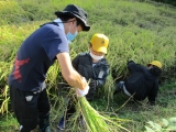 6月に田植えをした苗が大きく育ちました。恒例の稲刈りです。
