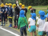 でも距離を取りながら、同じ田んぼに5年生と年長児と一緒に入り、稲刈りをしました。