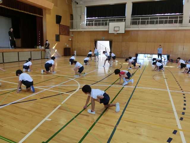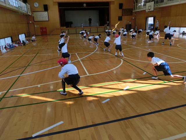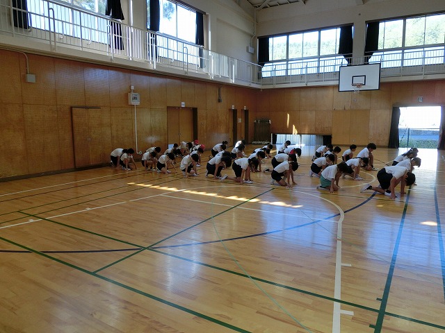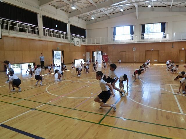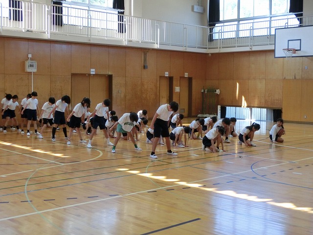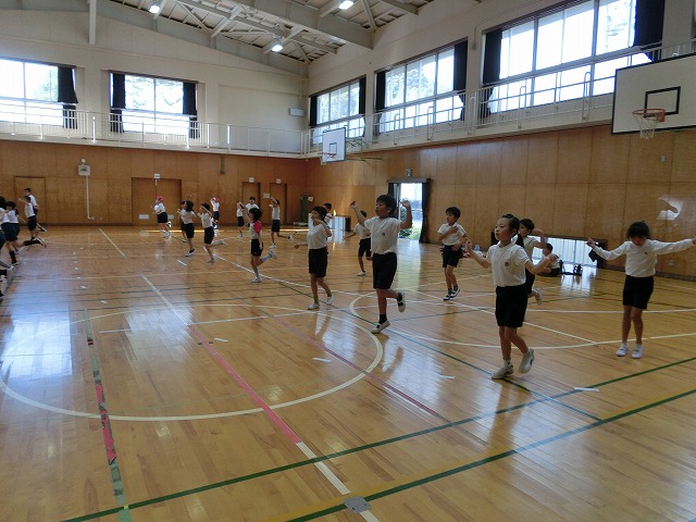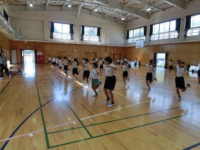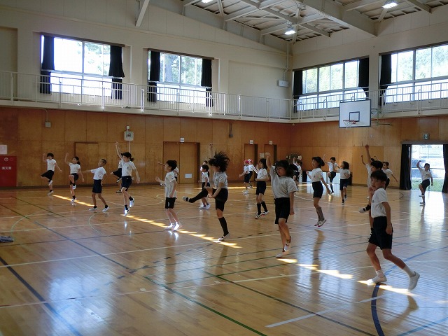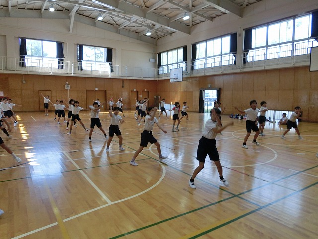 10月19日(木)体育館からの大きな声に誘われ行ってみると、今日も3・4年生が表現練習をがんばっていました。今日からは隊形移動も含めての練習となっていますが、子どもたちはとても意欲的に活動していました。