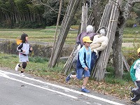 今日15日からマラソン練習が始まりました。中間休み、学校から出て、田んぼの中のマラソンコースを走ります。先生も一緒に走ります。案山子のキャサリンとロビンが途中で応援してくれます。さすが6年生、今日はトップで走りました。