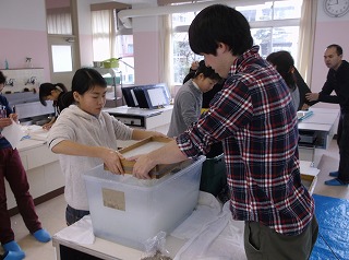 1月23日(火)6年生が紙漉きを行いました。6年生は共働spaceふくろう工房の協力により、毎年自ら漉いた紙を卒業証書にする伝統があります。今年の6年生もふくろう工房の皆さんが言う作成手順をよく聞いて、丁寧に紙を漉きました。漉いた紙は10日間ほどで出来上がるそうです。ご協力いただきましたふくろう工房の皆様ありがとうございました。
