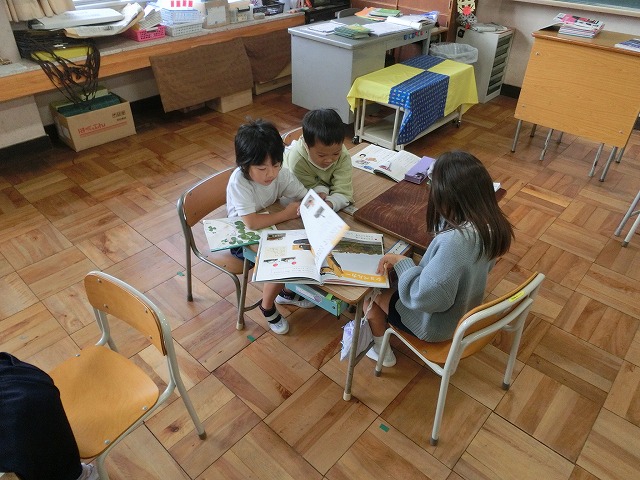 11月6日(月)1年生は国語科「じどう車ずかんをつくろう」の学習で、グループで本を見ながら、一人ひとりが自分の調べる車を決めました。