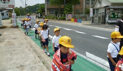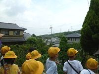校区の探検は3回目です。この日は、寺や公民館、公園に立ち寄りました。