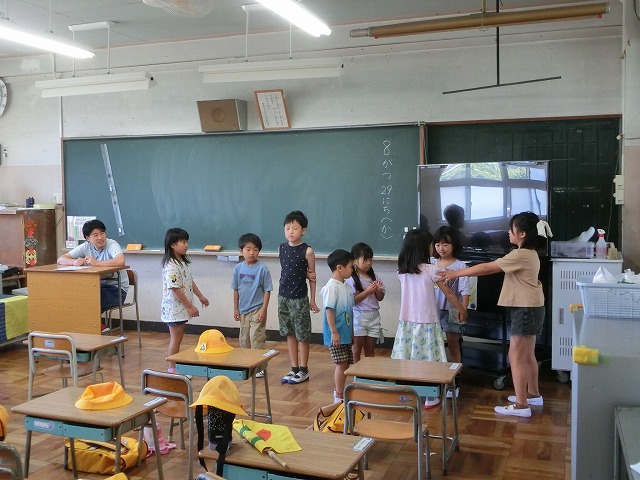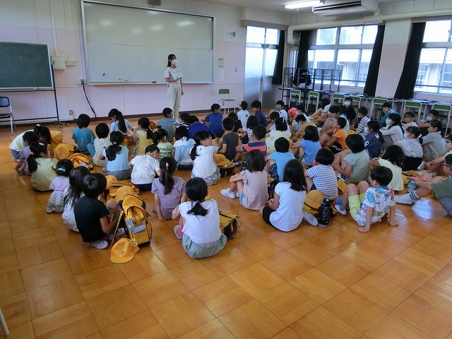 8月29日(火)今日の4時間目の後半に地域仲良し会を行いました。今日のねらいは「同じ地域の仲間を確認し合い、1学期の登下校の様子を振り返りながら、ルール等について確認する」でした。2学期も仲良く安全に登下校をしていきましょう。