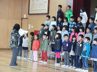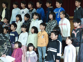 1時間目ということもあり、初めはあまり出ていなかった声も山田先生の指導を受けて徐々に出るようになり、1曲目の「やあ!」は元気よく、2曲目の「花は咲く」は想いを込めて優しくきれいに歌えるようになってきました。