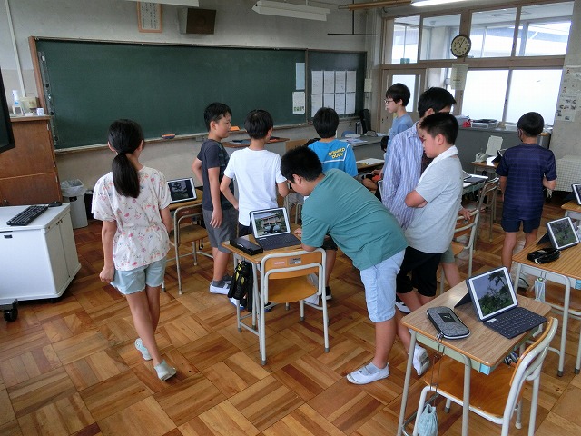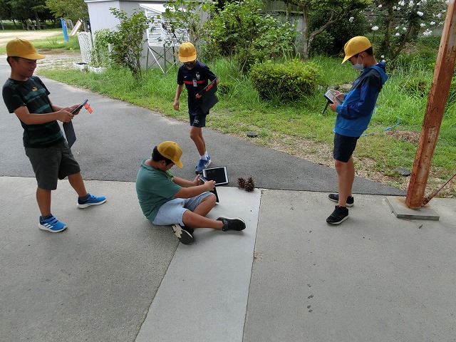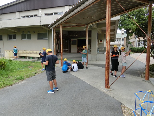 9月7日(木)6年生は「私の大切な風景」に取り組みます。今日は自分の中の大切な風景を探すため、校内を回ってタブレットで写真を撮りに行きました。普賢寺小学校名物の「おちばすぎ」の マツボックリを風景に入れたり、夏休みの思い出の場所等を選んだ子もあって、それぞれが選んだ風景を見合いっこしました。