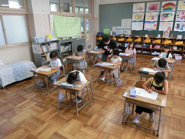 9月8日(金)今週も最終日となりました。1年生の子どもたちは今日も落ち着いて学習しています。今日の1時間目は国語のカタカナ「ナ」の段の学習をしました。お手本の字をしっかり見ながら姿勢よく学習できました。