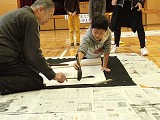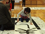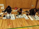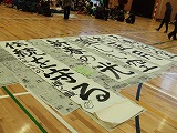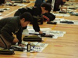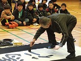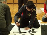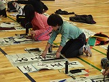 体育館のピリッとした寒さと、筆を握る緊張感で