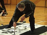 大きな画仙紙に、大きな筆で力強く書かれる姿に