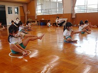 ♪いぬのおまわりさん♪めだかのがっこうに合わせてストレッチ!童謡のやさしい心地よいリズムに合わせて心も体もポカポカあたたかくなりました。