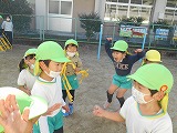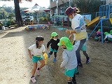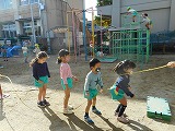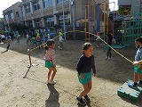 運動参観を経験したことで自信をもち、友達同士の結びつきも強くなってきました。異年齢児のお友達と関わって遊ぶ姿も見られます。思い思いにしたい遊びを見つけ、遊びを楽しんでいます。お友達と大繩に挑戦!!記録にチャレンジしています。