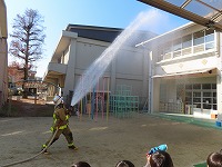 先生たちの消火訓練をみて応援しました。