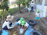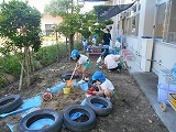 できたてほやほやの新しい裏の遊び場も涼しくて、「すごい!」「遊んでいいの?」と喜んでくれました。