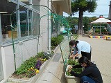 市役所からゴーヤ、ささげ豆、つるむらさきをいただき、植えてくれました。