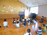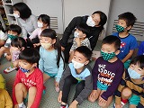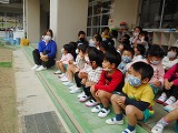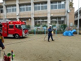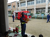 非常ベルが鳴って火事の想定で避難訓練をしました。先生の話をよく聞いて避難できたことを、消防士さんも褒めてくださいました。